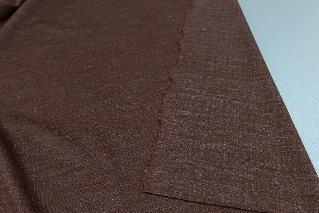 Трикотаж средней плотности вишневого цвета с вывязанной елочкой. Ткань мягкая и приятная на ощупь. Подойдет для пошива платья, свитшота, юбки или кардигана.